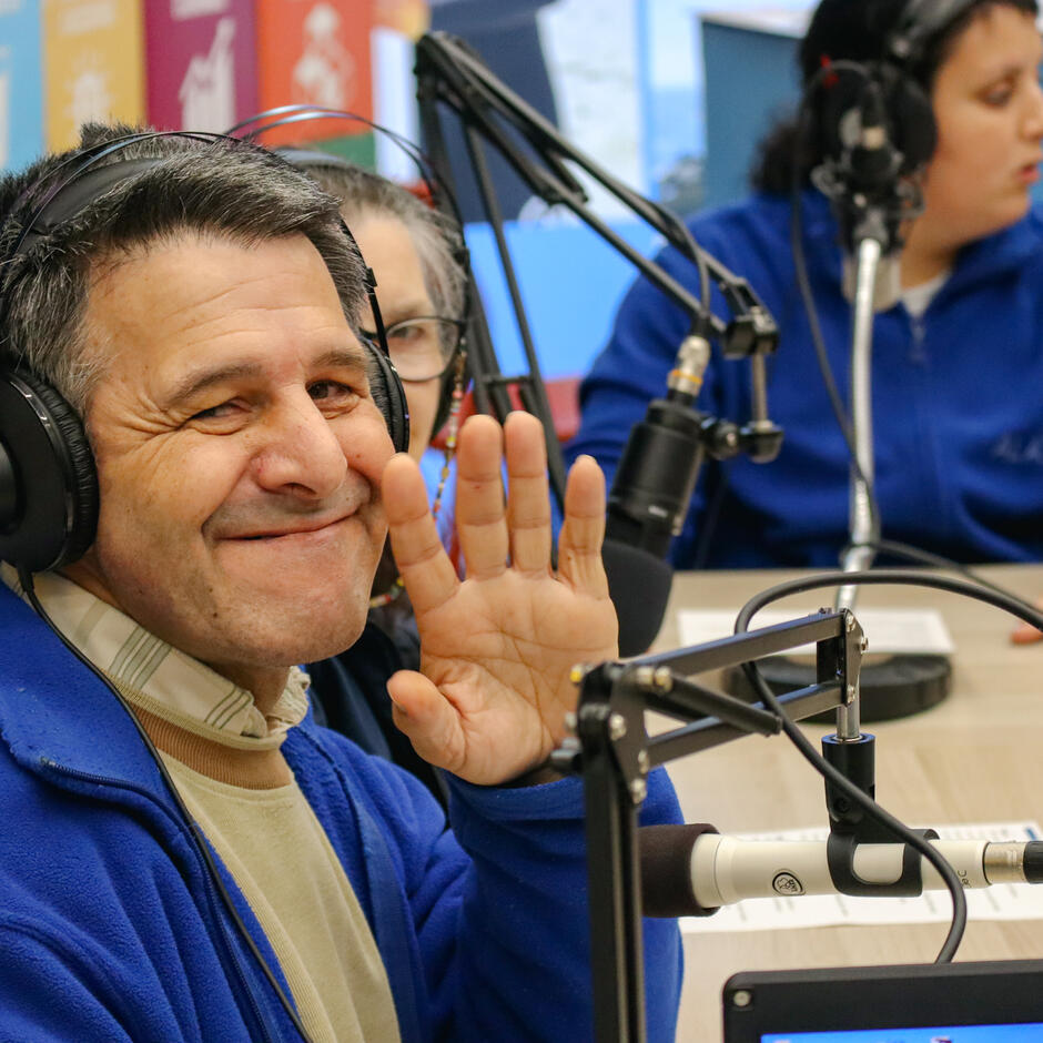 Pela primeira vez, a “FM Inclusiva” saiu à rua e marcou presença na 4.ª edição do evento “Todos Juntos, somos Segurança e Saúde”, que decorreu entre os dias 8 e 10 de maio, no Mar Shopping Matosinhos. Esta rádio inclusiva, totalmente dinamizada pelos utentes da ALADI, é um projeto cofinanciado pelo Prémio BPI Capacitar 2021, e representa uma aposta clara na promoção da cidadania ativa através da comunicação.