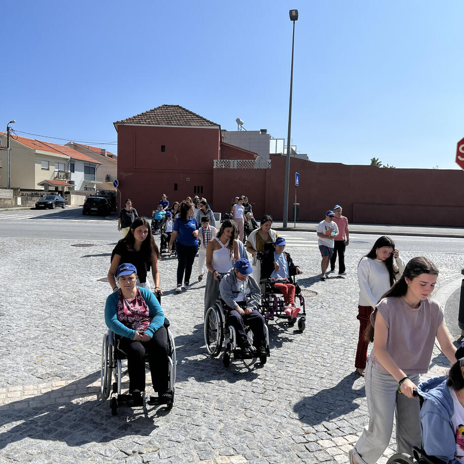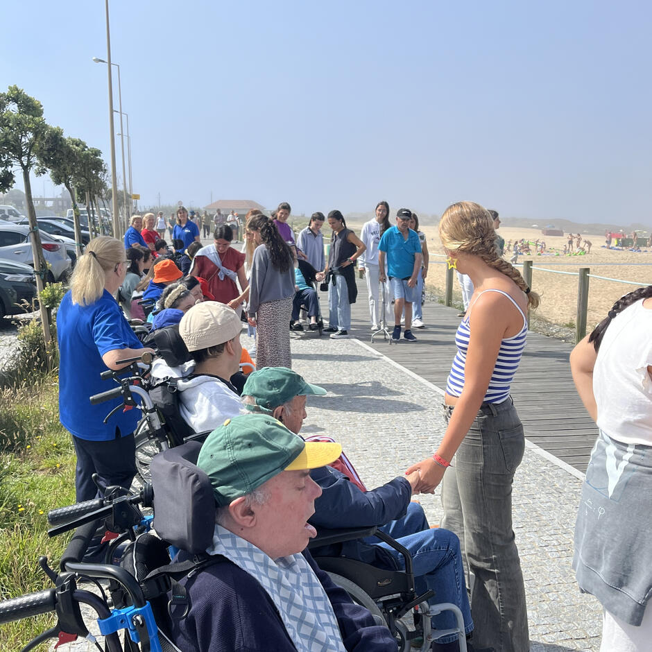 Procurou-se, sobretudo, promover o contacto com outras comunidades e diminuir o sedentarismo através de uma caminhada com os utentes pelos passadiços da Praia da Memória.
