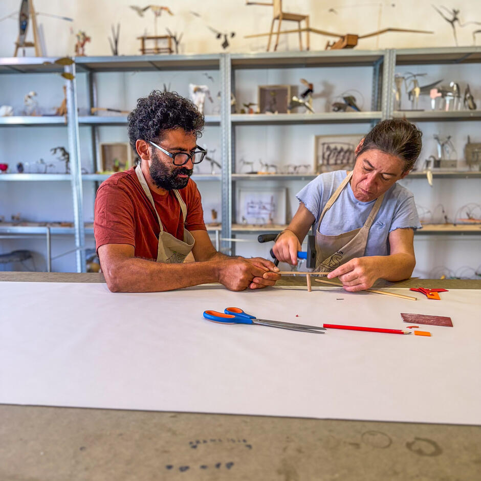 A atividade foi orientada para a construção de brinquedos que exploram o movimento, incentivando os participantes a criar peças únicas que refletem tanto criatividade individual como trabalho colaborativo.