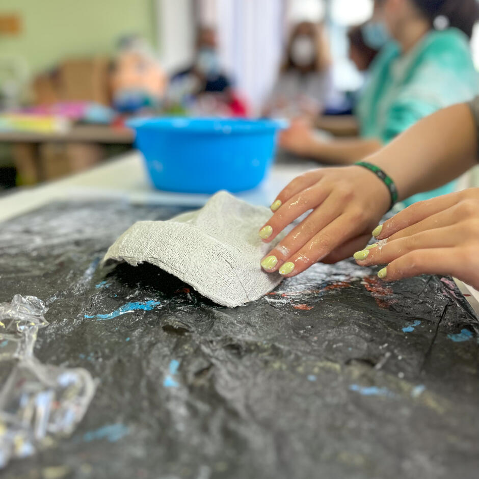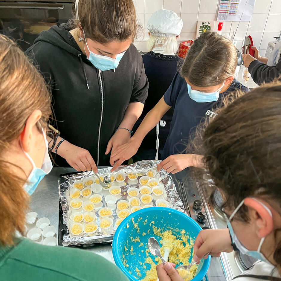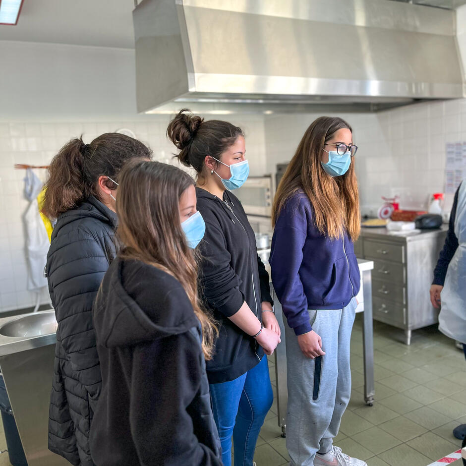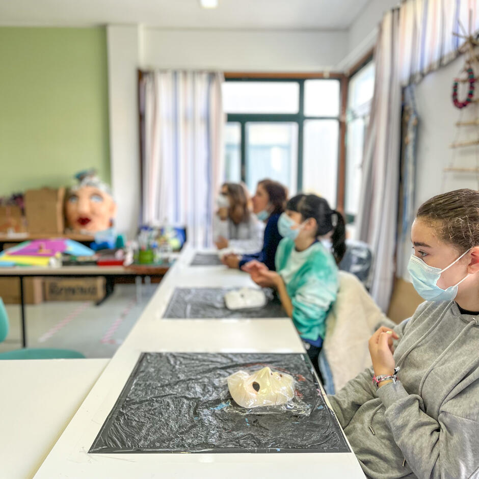 Pelas 10h30, os alunos juntaram-se aos utentes em algumas atividades que preenchem o dia-a-dia da ALADI, tais como Decoração, Culinária, Cerâmica ou Ginástica.