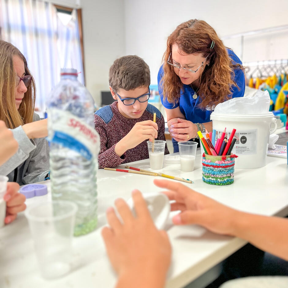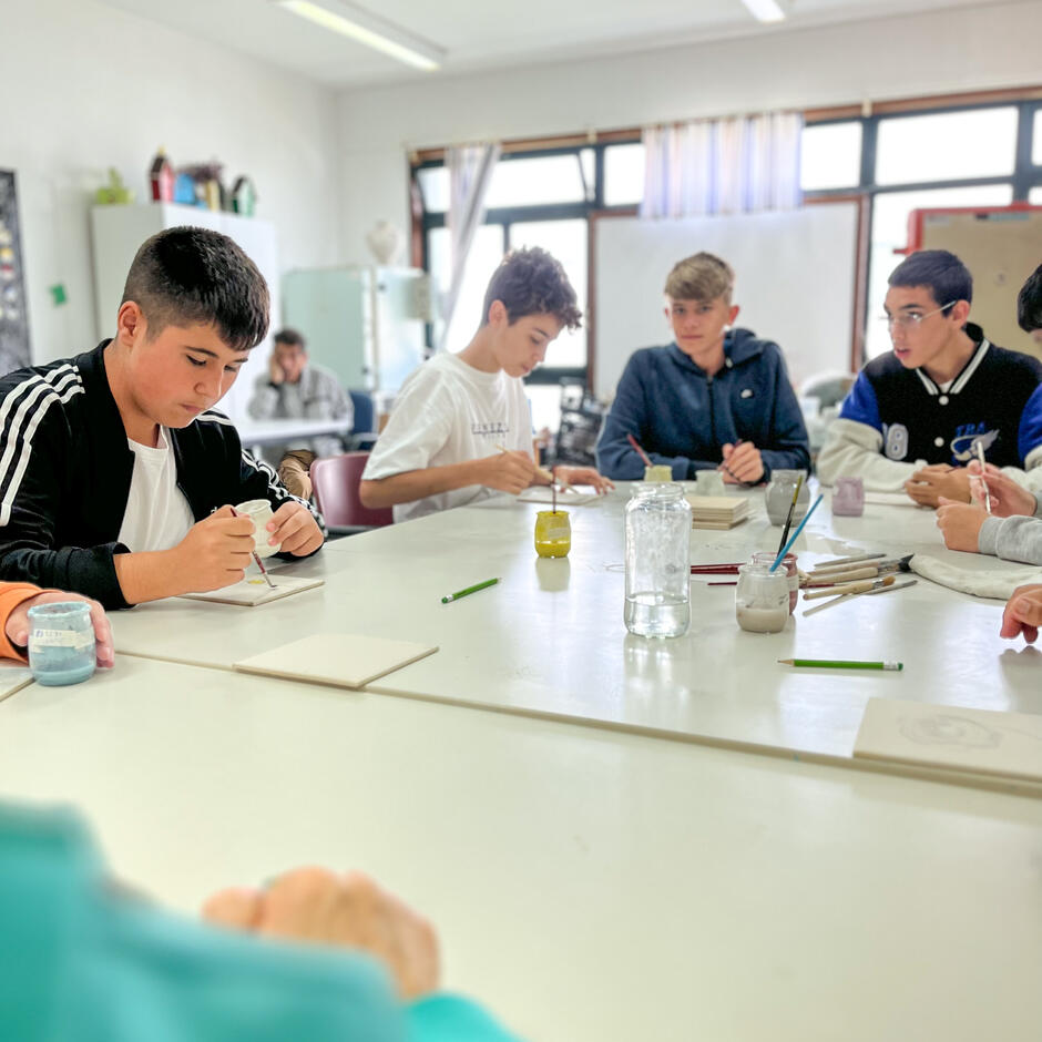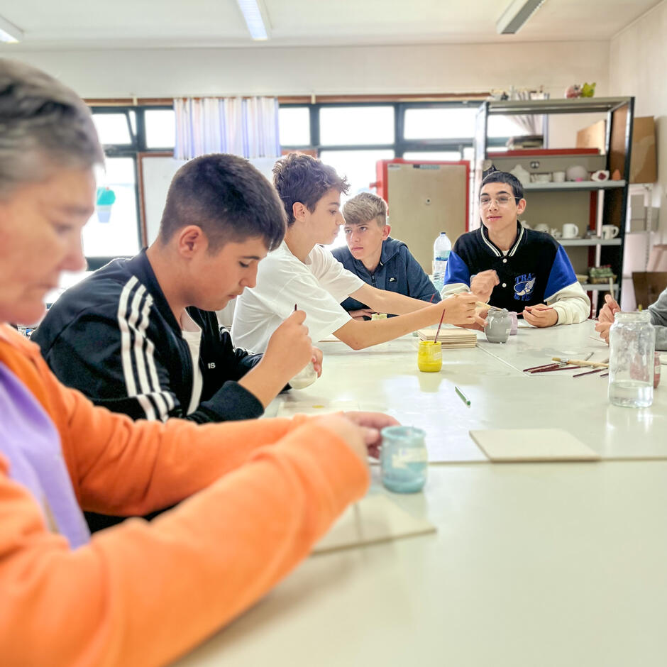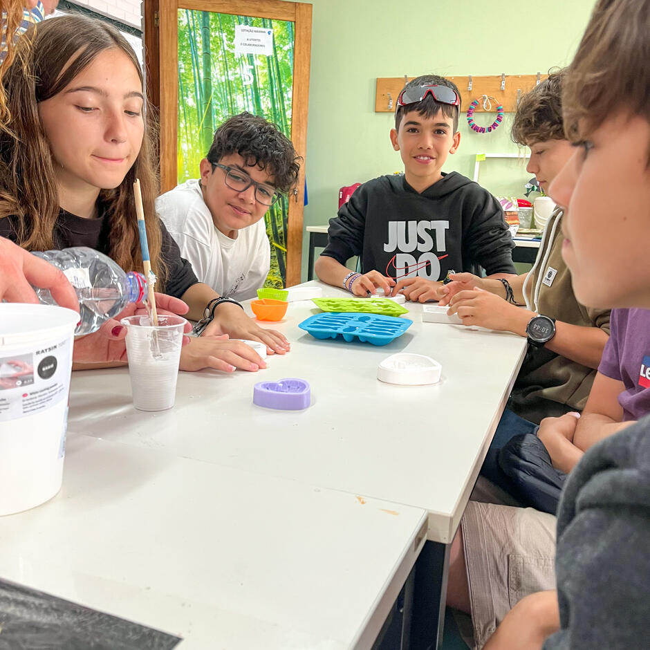 No dia 05 de junho, recebemos, na nossa instituição, 19 alunos de uma turma do 7.º ano da Escola EB 2,3 Dr. José Domingues dos Santos, em Lavra. Os jovens passaram uma manhã diferente ao participar no Dia D. Realizaram algumas das atividades que preenchem o dia a dia dos nossos utentes, tais como decoração, cerâmica ou ginástica. No dia 13, voltámos a receber mais uma turma do 7.º ano do mesmo estabelecimento de ensino.